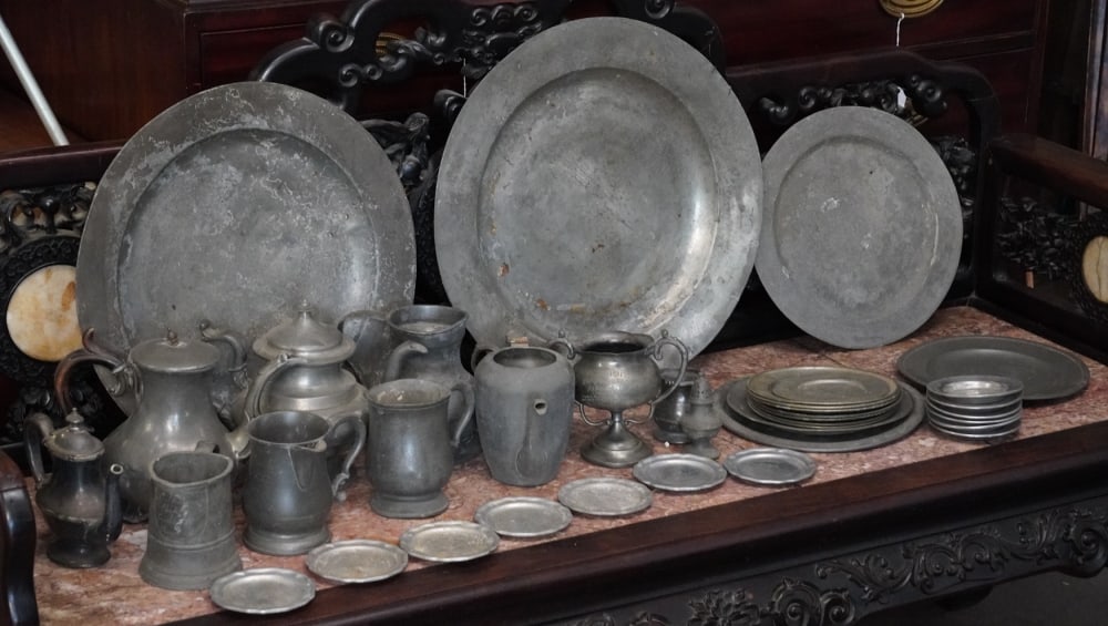 Collection Various Antique Pewter Table