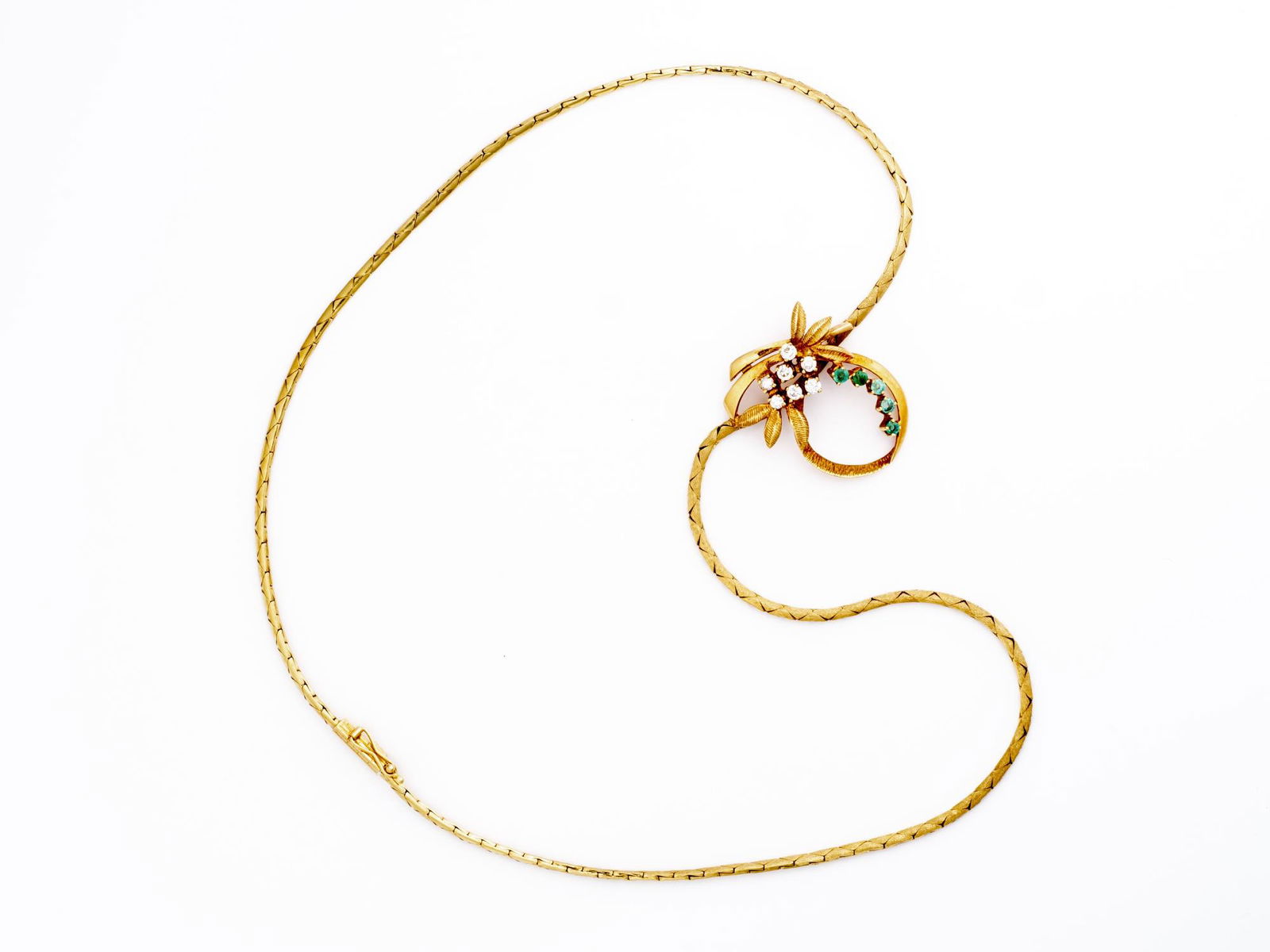 Collier, or jaune, diamants et émeraudes