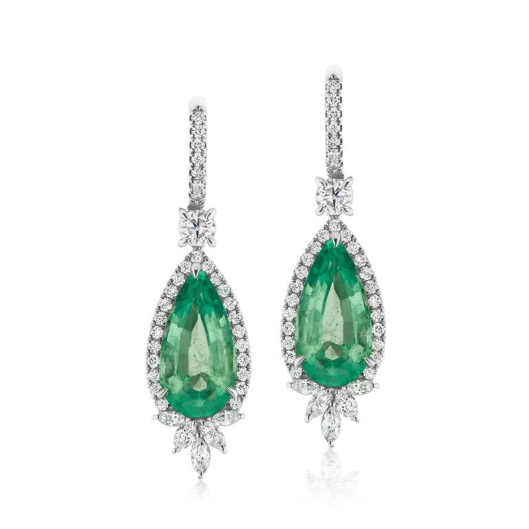 2.28 CTW Pear Zambian Emerald Modern 14K White Gold Earrings - CertifiedSerenity Gallerie$506 days Left