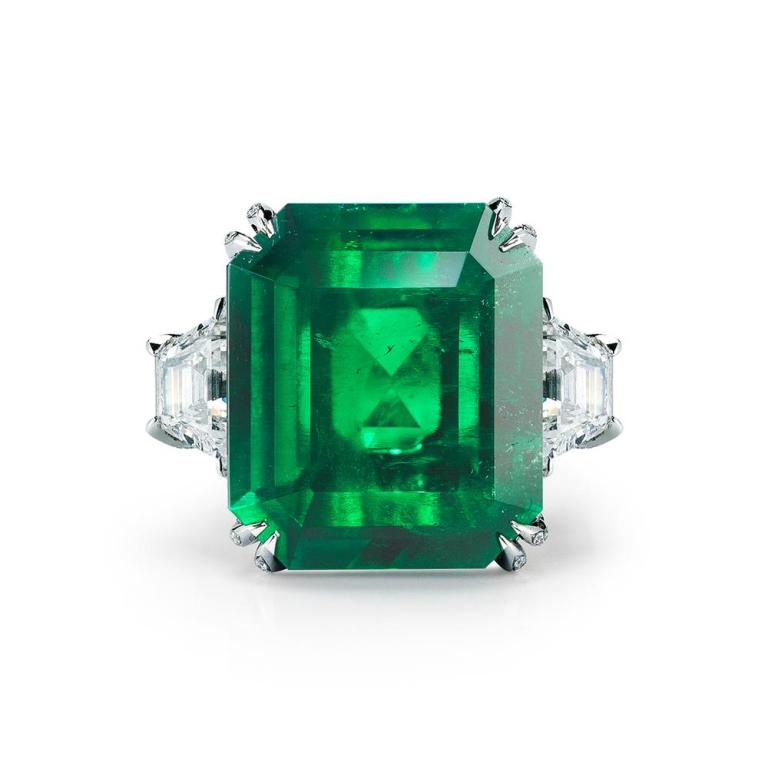 SoldOCTAGON EMERALD RINGCOLOMBIAN EMERALD RING WITH DIAMOND A simply stunning and substantial (AGL and Gubelin Certified) Emerald is the star of this classic platinum ring. The 17.81 ct vibrant green Emerald is embraced on bSee Sold Price