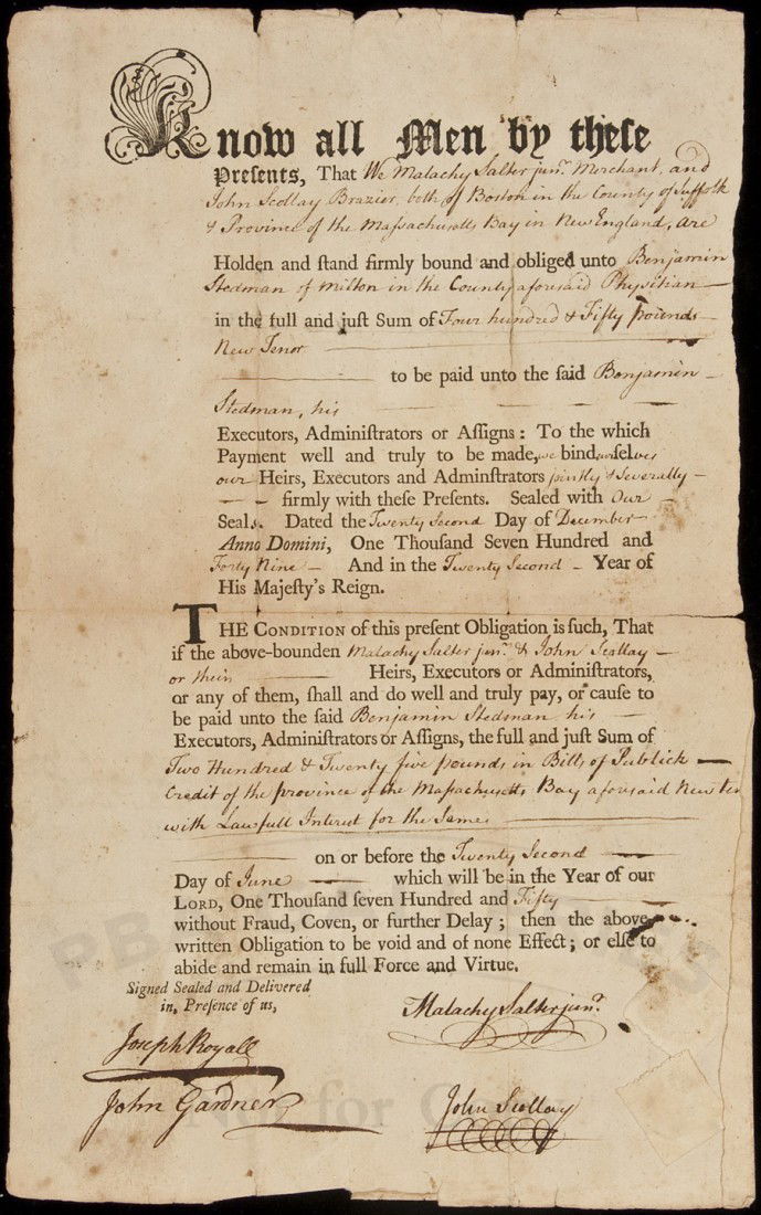 Colonial Boston document signed by John Scollay