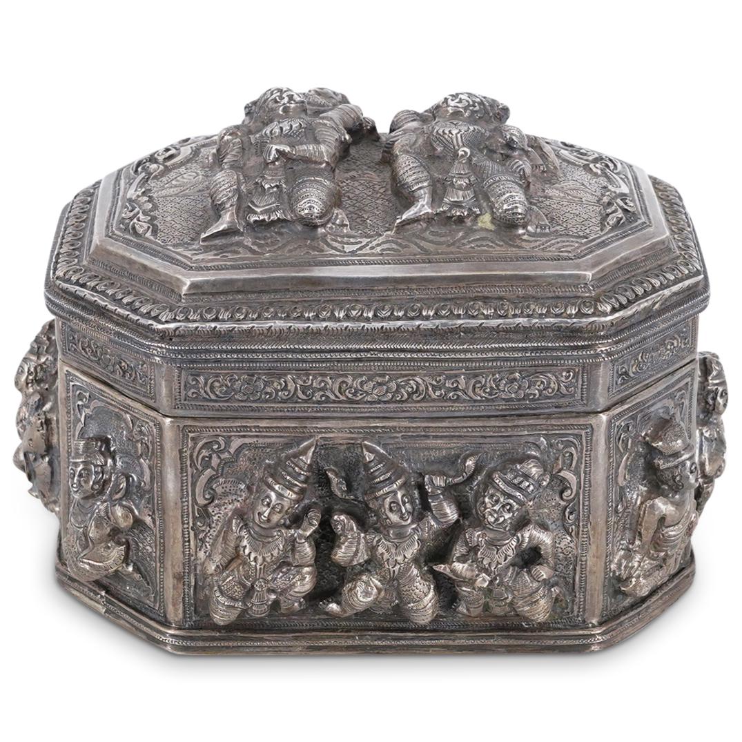 Colonial Burmese Silver Repousse Box