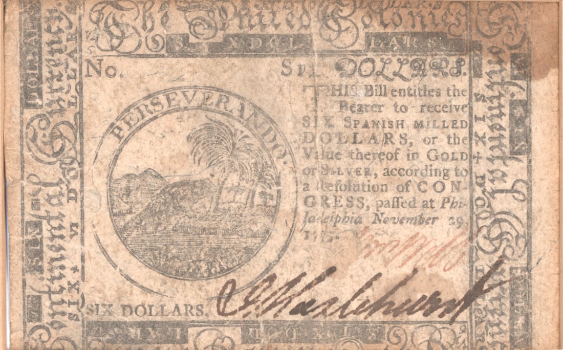 EIGHT CONTINENTAL CURRENCY NOTES.1775 May 10, $30 Continental Currency PMG CU63/ 62 FR#CC-10/ CC-10CT PairApr 30, 2026FIVE MASSACHUSETTS, RHODE ISLAND, AND CONNECTICUT COLONIAL CURRENCY NOTES.1776 $1/2 Continental Currency Type CC-21 PCGS AU58 Certified4 hrs LeftMaryland Colonial Currency 55 PPQ About Ch PCGS Dec 7 1775May 02, 2026Australia 'Bank of Van Diemen's Land' dated July 1st 1832 £20 skilfully altered from a £1,November 29 1775 Seven Dollar Continental Currency PMG Graded 64 EPQ2 days LeftFinancing the Revolution: 1779 Massachusetts Lottery Receipt w/ Snake EmblemApr 24, 2026UNITED STATES BLACK EAGLE ONE DOLLAR SILVER CERTIFICATEApr 26, 2026New Zealand/Australia Bank of New South Wales 19_ £1 Printers Proof, virtually Uncirculated OPQUS Obsolete Currency, Corporation of Shepherdstown, Virginia, One Dollar Scrip, 1862Apr 30, 2026Confederate States February 17 1864 50 Dollar CSA Bank Note Dollar Bill Columbia South Carolina SCApr 22, 2026Citizens Bank of Louisiana Confederate States 10 Dollar Dix Note CSA Bank Note Dollar Bill NewApr 22, 20261845 Folded Letter Sheet, New York to Brooklyn, Red print PAID MarkApr 26, 2026Pennsylvania Company $1,000 9% Sinking Fund4 days LeftUnited States 1882 Williamsburg Bank, Pennsylvania Check RN-G1 Orange Revenue ImprintMay 02, 2026