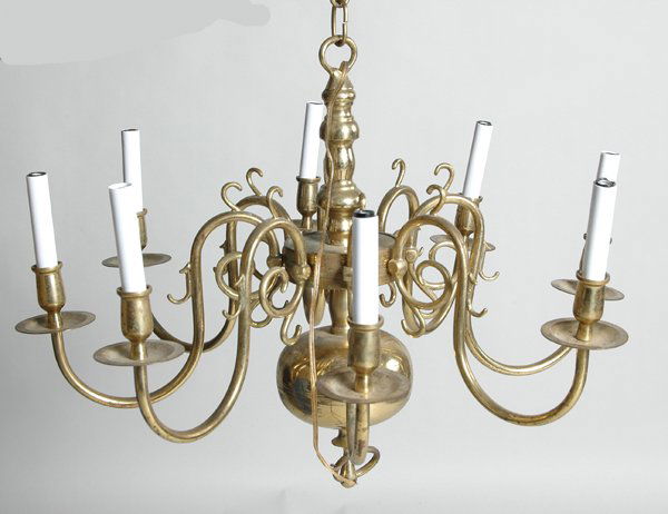 COLONIAL STYLE BRASS 8 LIGHT CHANDELIER