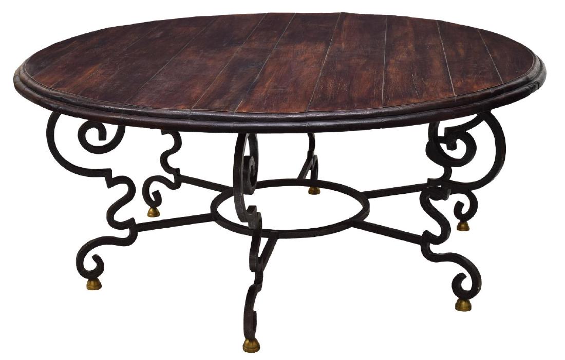 COLONIAL STYLE TEAK & IRON ROUND DINING TABLE