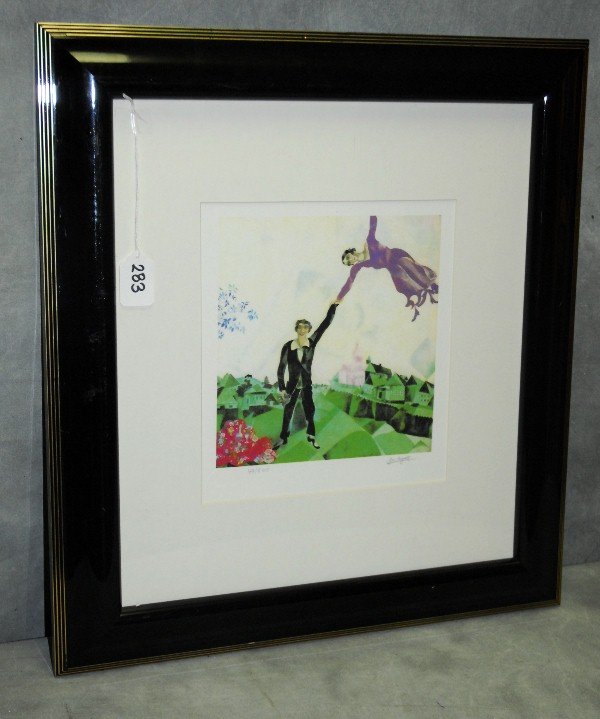 SoldMarc Chagall "Daphnis & Chloe" 1977 Lithograph Framed Print w/COAMarc Chagall "Daphnis & Chloe" 1977 Lithograph Framed Print w/COA. Apparently signed by Marc Chagall (1887-1985) in black colored pencil lower right. Approx. image size 12 1/2" x 9 1/2". Good sight coSee Sold Price