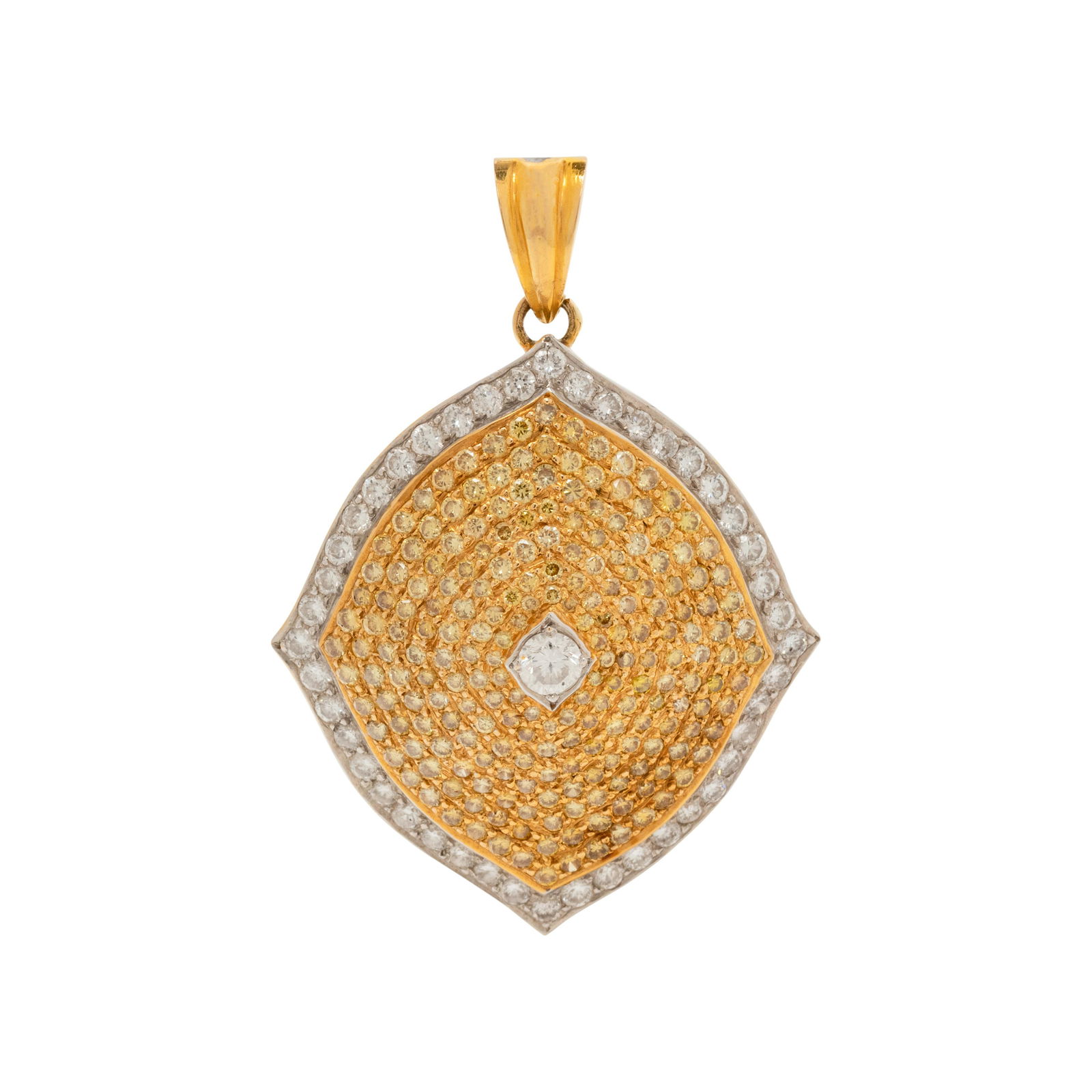 COLORED DIAMOND AND DIAMOND PENDANT