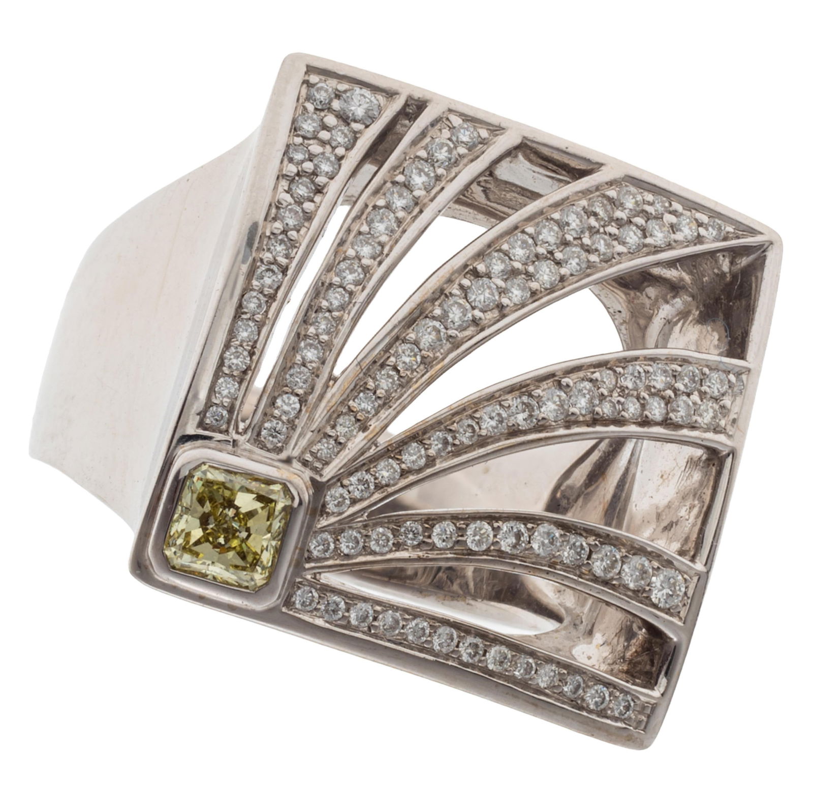 Vintage Yellow Sapphire Diamond 18k White Gold RING Italy