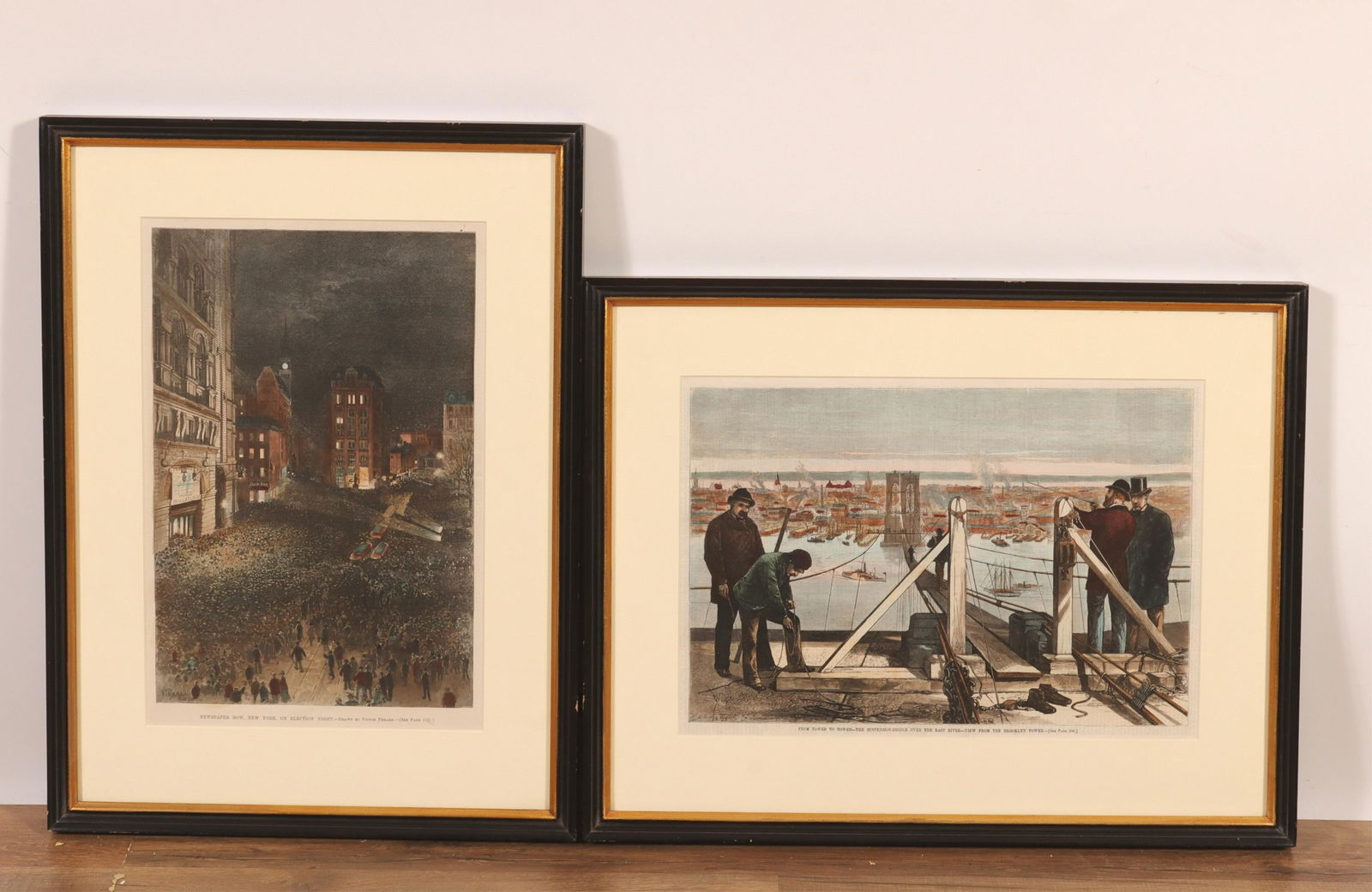Colored Engravings NYC: Brooklyn Bridge; Election