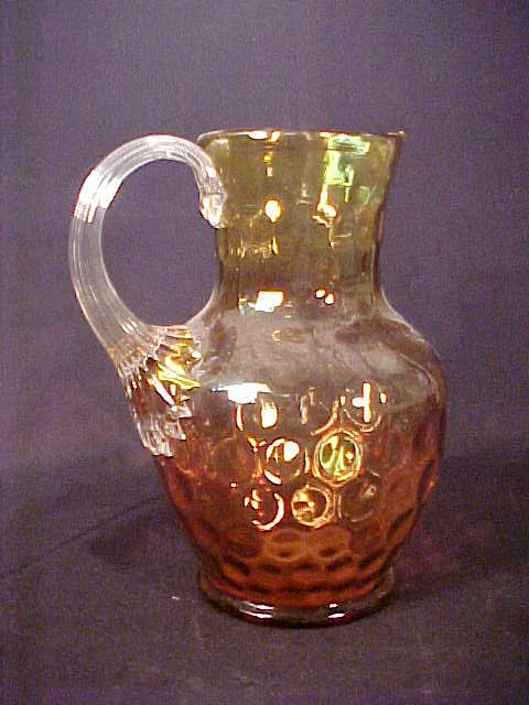 COLORED GLASS THUMBPRINT WATER PITCHER