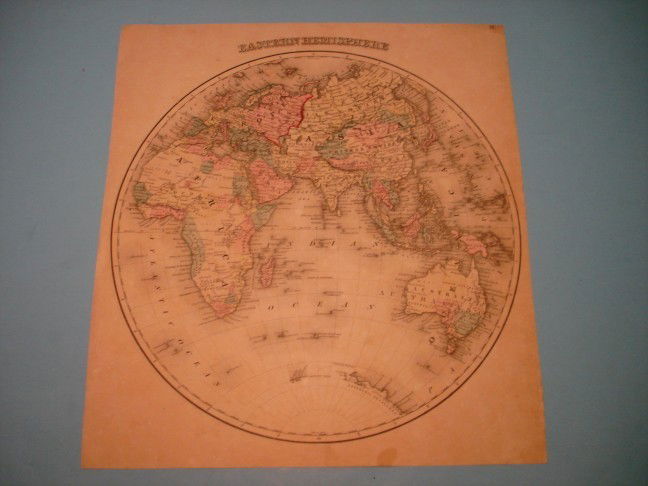 SoldTwo Maps by Samuel Augustus Mitchell (1790-1868),Two Maps by Samuel Augustus Mitchell (1790-1868), consisting of "Western Hemisphere", 1874, hand colored, H. -15 1/4 in., W. - 11 3/4 in.; together with "Eastern Hemisphere", 1884, hand colored, H. -1See Sold Price