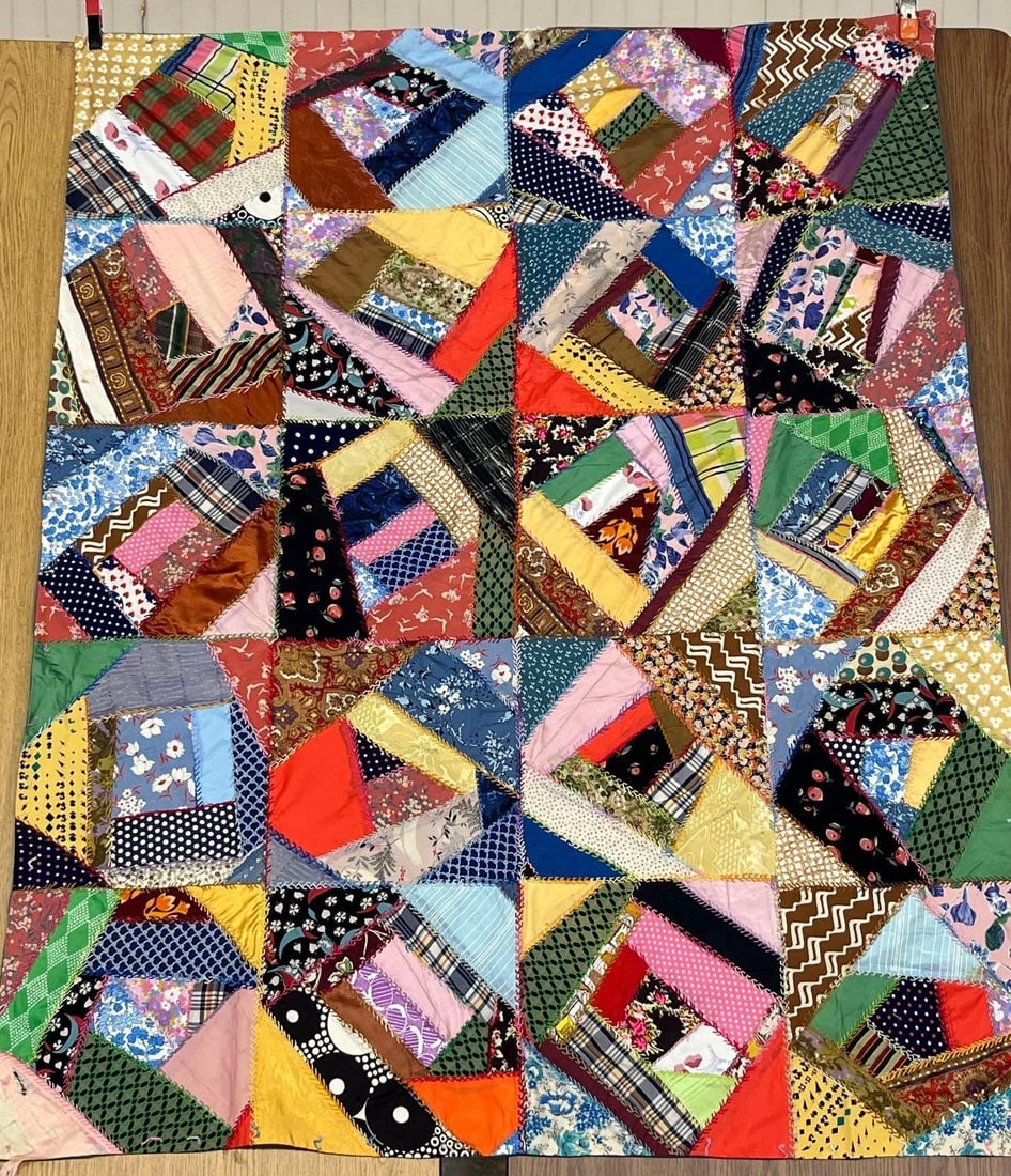 Colorful Hand Stitched crazy quilt