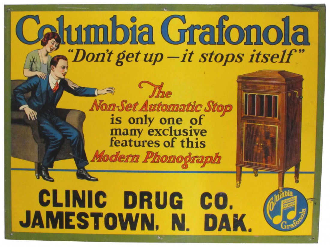 Dentist Dr. Hyman Directional Arrow Sign and Old Sleepy Eye Cream LabelMar 20, 2026Columbia Grafonola dealer signMar 28, 2026Take Home A Carton Of Pepsi Cola Single Sided Tin SignMar 21, 2026Chesterfield Cigarettes Single Sided Tin SignMar 20, 2026Columbia Phonograph Co. "The Disc Graphophone"Mar 14, 2026Colonial Club Cigars Double-Sided Flange SignMar 14, 2026So Grape So Good Single Sided Tin SignMar 20, 2026Edison Lamp Works Mazda Tin Litho SignMar 14, 2026Drink Queen Cola It's Different And Better Embossed Single Sided Tin SignMar 20, 2026Nutrene Candies product tinMar 28, 2026Dan W. Mitchell Prescription SST Advertising SignMar 21, 2026Nichol Kola Single Sided Tin Embossed Sign 28x20"Feb 28, 2026Dr. Hyman Painless Dentist Tin Advertising SignMar 14, 2026YANKEE GIRL TOBACCO TIN TACKER SIGN9 hrs LeftCheer Up A Delightful Drink Single-Sided Tin SignMar 14, 2026Drink Coca Cola "The Pause that Refreshes" Cardboard Sign w/ Wooden FrameMar 20, 2026
