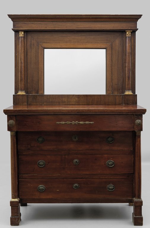 Comò Impero in noce con specchiera, 4 cassetti