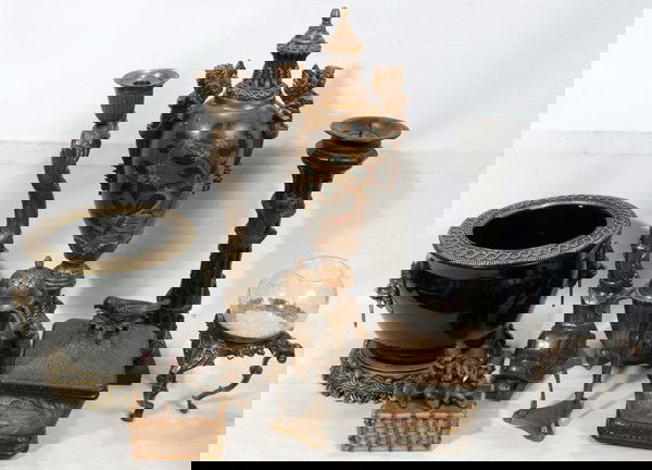 8PC LOT OF ABUJA POTTERYMar 07, 2026LOT ANTIQUE BRONZE BOXES, VANITY ITEMS, ETCMar 07, 2026ESTATE LOT ENGLISH WOODEN TAVERN ITEMS, BRASS, ETCMar 07, 2026Lot of Seven Hand Painted Wood & Paper Mache Boxes3 hrs LeftLot of sterling silver dresser accessories, including various covered glass jars and scent bottles.Mar 01, 2026A composed lot of four religious silver and silver-plated brass church objectsFeb 24, 2026Lot of sterling silver accessories and tableware. To include: Chinese wise man figural shakers, O.Mar 01, 2026Estate Lot of 5 Antique Chinese & Bronze: Box, Bottle, Tray, Vase & Leather WalletMar 15, 2026Lot of antique jewelry and accessories. To include: 1) 14K gold framed micro mosaic pin of ruins.Mar 01, 2026LOT OF BRASS SMALLSFeb 26, 2026ANTIQUE BRONZE DECORATIVES, SCULPTURES, ETC.Mar 07, 2026Mostly Faux Carvings, Some AuthenticFeb 25, 2026Group Mostly Silver Plate + (1) Sterling CandleFeb 25, 2026Antiques, GlasswareFeb 25, 2026Group of Studio PotteryFeb 25, 2026Perfume / Decorative (7) BottlesFeb 25, 2026