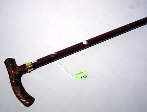 COMPOSTION WOOD FIGURED ''L'' HANDLE WALKING STICK