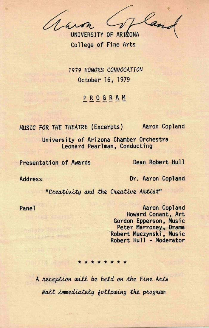 Conductor, Songwriter AARON COPLAND - Program