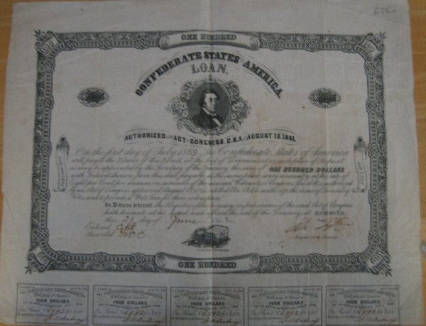 Framed February 20, 1863 $1000 Confederate States Of America Loan BondFeb 27, 2026CH63 1862-63 $100 Confederate States of America T-40 PMGFeb 27, 2026Confederate States of America, Five Dollars T36.Mar 11, 20261899 US $1 Black Eagle Silver CertificateMar 07, 2026Confederate States of America, 300 Dollars Interim Depostory Receipt.Mar 11, 2026Choice 1861 $5 Confederate States of America T-36 CSA PMG AU58 EPQFeb 26, 20261861 South Carolina $100 Confederate BondMar 07, 2026(746) 1861 $10 CONFEDERATE STATES OF AMERICA NOTE T-28 PF-8 CR-235A PCGS 25 VF4 days LeftConfederate States of America. Group of Five [2] Two Dollars T42, T54, T61 & T70.Mar 11, 2026PPQ Union Army Commutation Money Receipt Aug 11 1864 PCGS AU53Mar 03, 2026Stephen F. Austin Signed Texian Loan CertificateFeb 26, 2026Andrew Johnson Signed 1865 Appointment Document 9.65x13.85 PSA/DNA Certified9 hrs LeftConfederate States of America. Group of Three [3] Five Dollars T53.Mar 11, 202664PPQ Union Army Commutation Money Receipt Aug 22 1864 MS5 days LeftVF25 1861 $20 Confederate States of America T-18 CSA PMG5 days LeftFoster Meekins 5th Sgt. 34th Mass appointmentMar 02, 2026