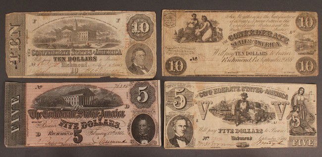 Confederate currency, 4 pcs