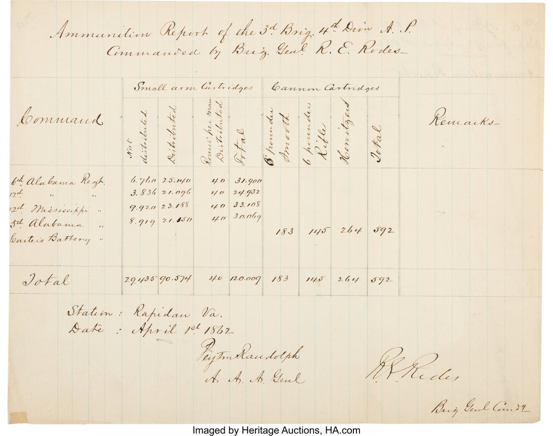 Confederate General Robert E. Rodes Document Sig