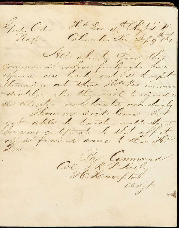 Confederate ms. Regimental Order Book