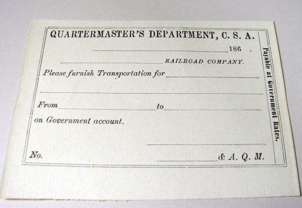 Confederate Pre Printed Railroad Pass