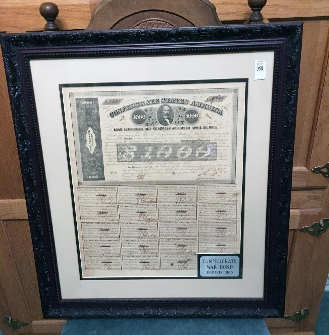 Two Framed Documents one is a Confederate Loan Certificate, most likely used to finance theA&S Antique Auction Co.4.3(81)$50Mar 29, 2026