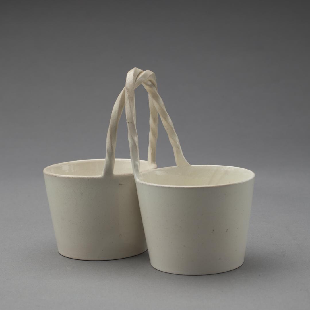 CONJOINED CREAMWARE NUT PAIL WITH LOOP HANDLES