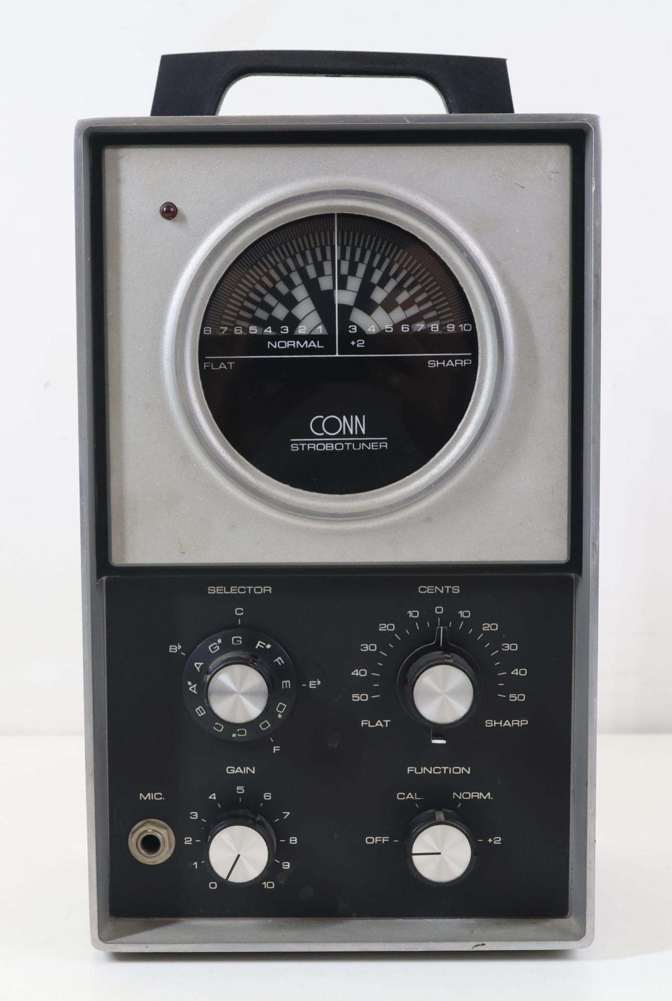 SoldConn Strobotuner. With Microphone & CaseConn Strobotuner, Marked on the dial Working condition. With microphone in carrying case. 8"W. x 5"DSee Sold Price