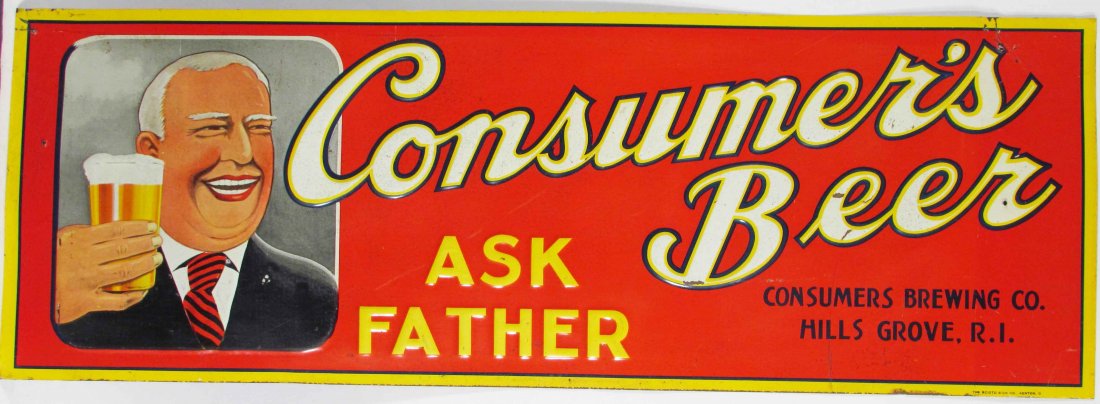 Consumers Beer Embossed Tin Sign