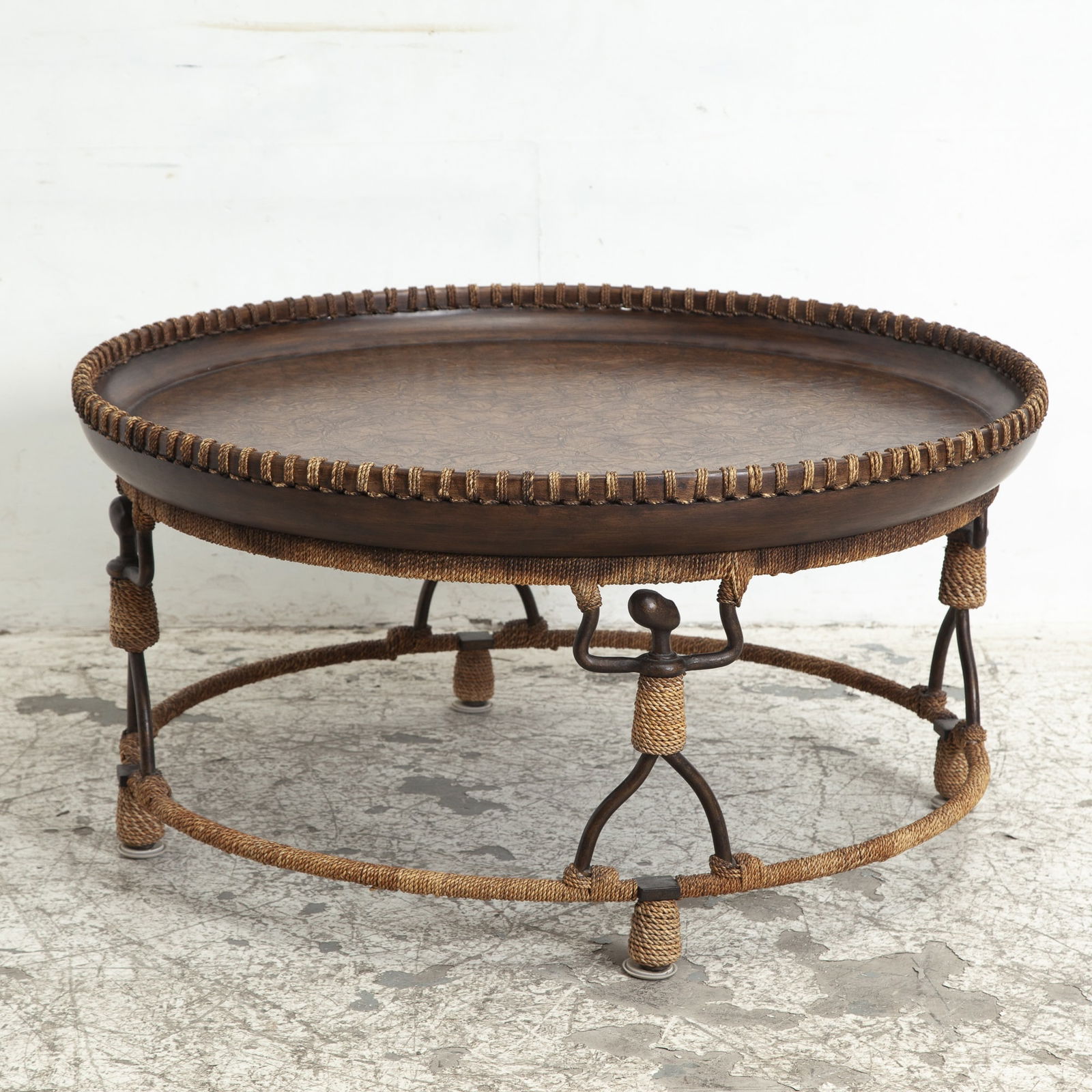 Contemporary Circular Iron & Rope Coffee Table