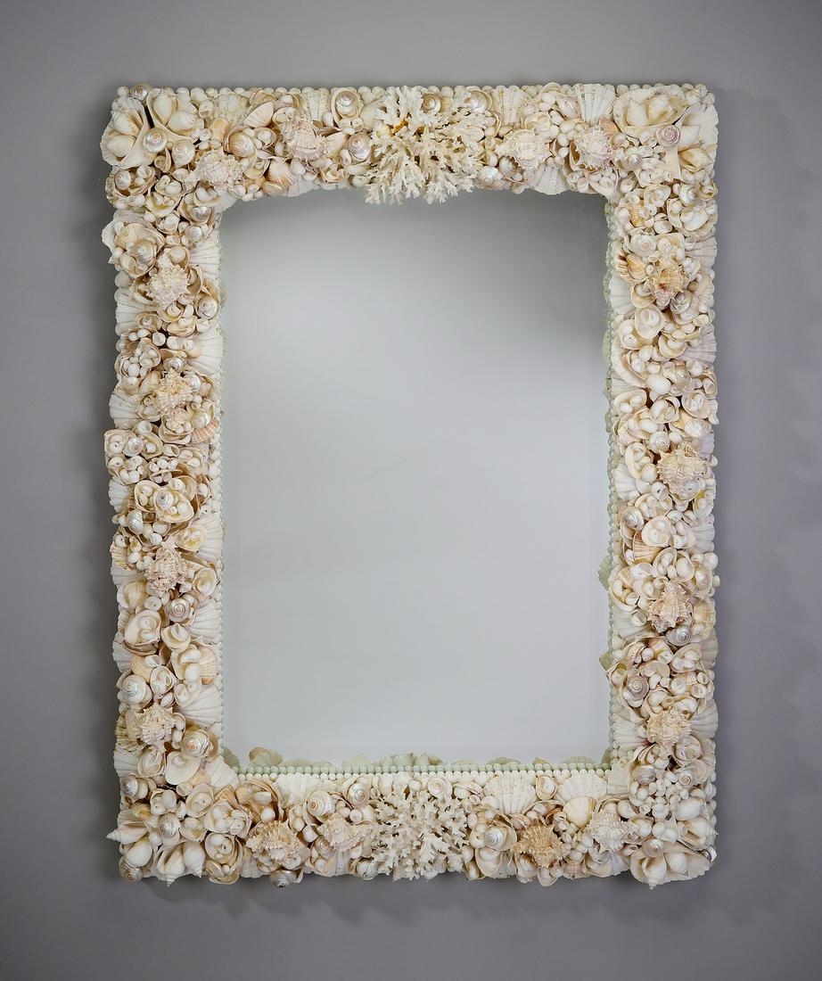 Contemporary coral and shell mirror