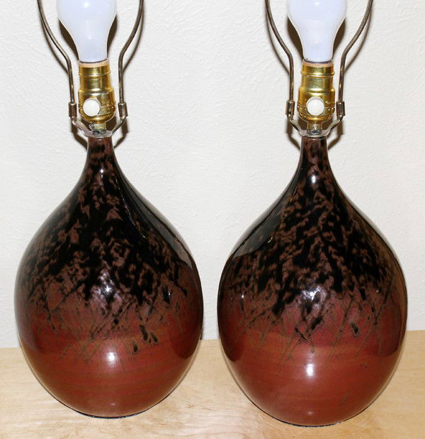 CONTEMPORARY GLAZED CERAMIC TABLE LAMPS, PAIR