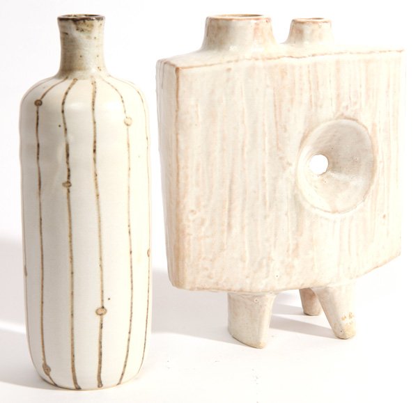 2 Studio Art Pottery Lidded Vases