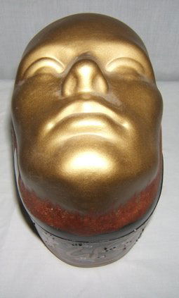 SoldSIGNED CONTEMPORARY POTTERY CANDLE VASEArtist signed pottery vase with face of a woman and open reticulated design. Holder in middle for candle. 9" wide 7.5" tall.See Sold Price