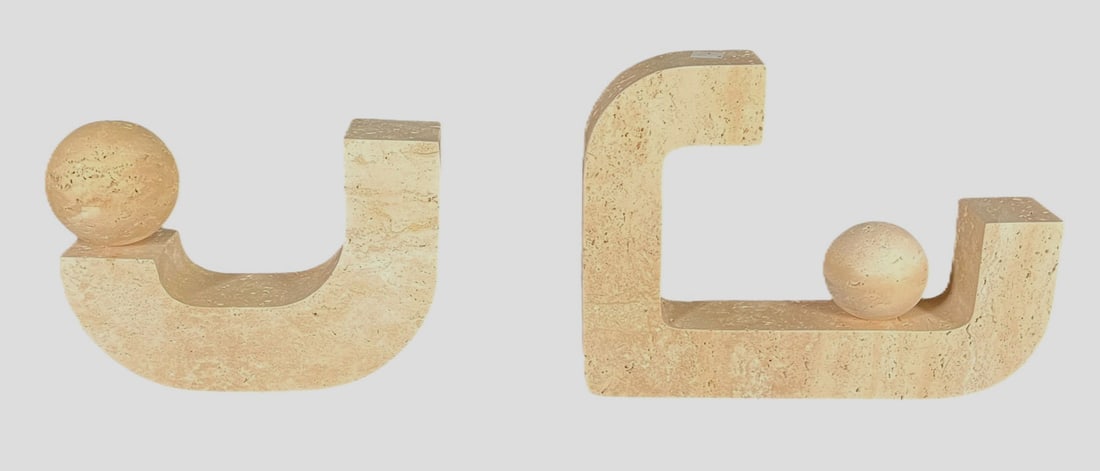 CONTEMPORARY SCULPTED TRAVERTINE BOOKENDS