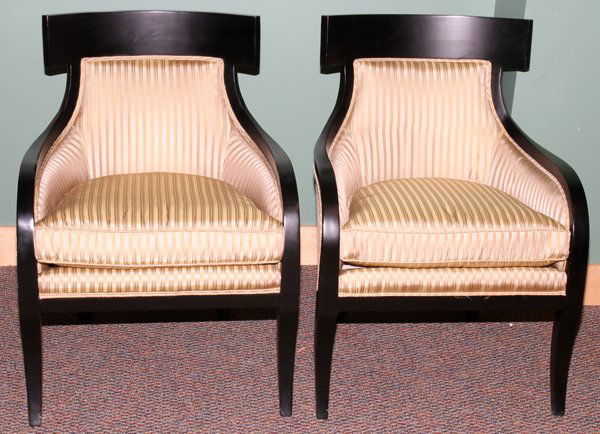 PAIR OF EBONIZED WOOD LOUNGE CHAIRS WITH FLARED ARMS HAVING NEW FABRIC C 1980.Kamelot Auctions4.4(346)$800(1 bid)Mar 25, 2026