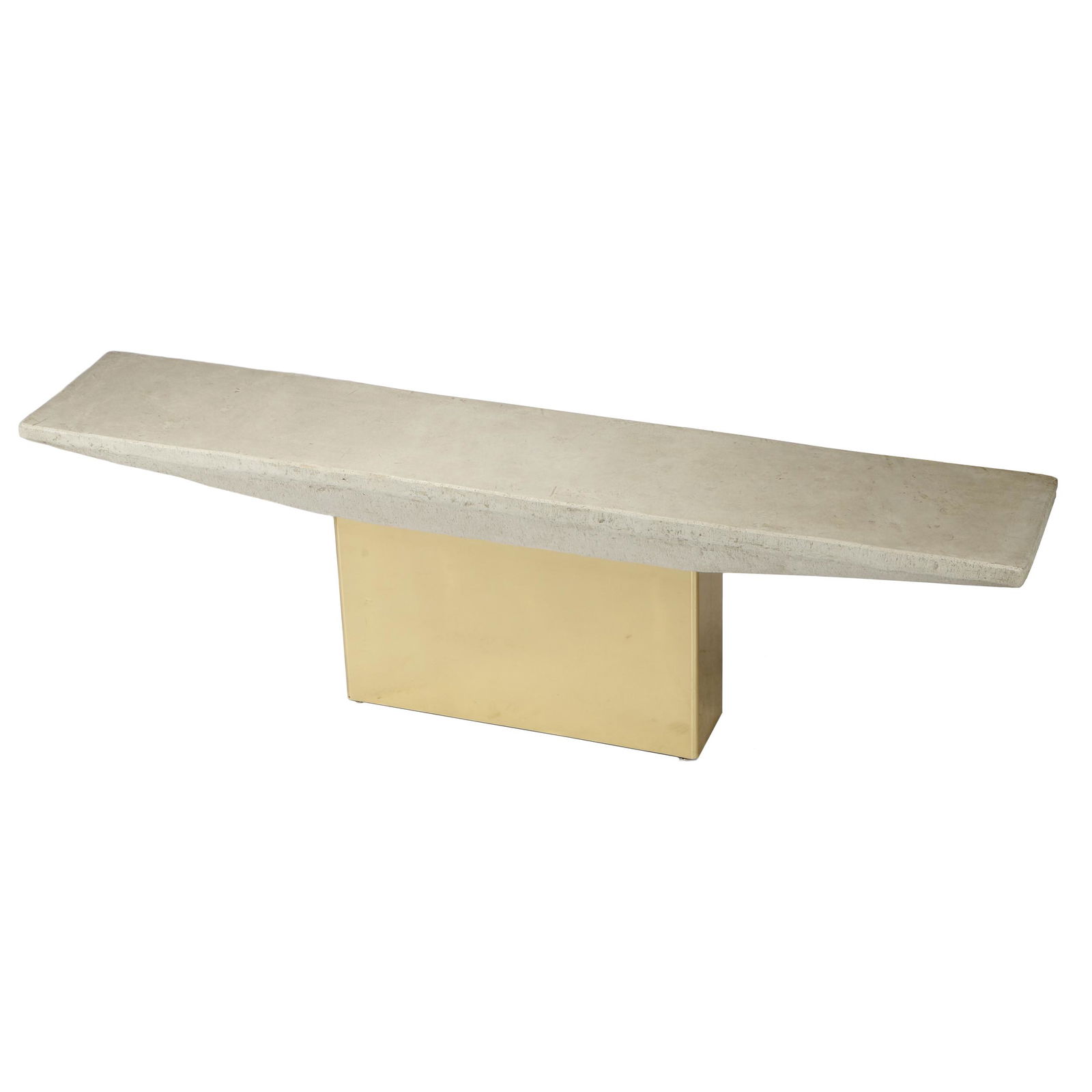 Contemporary Stone and Metal ConsoleA Contemporary sculptural form, the hewn stone top supported on a polished metal base. 30in. (76cm) H 18in. (46cm) W 96in. (244cm) LSee Sold Price