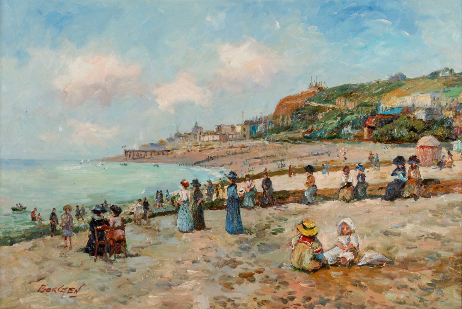 CONTINENTAL BEACH SCENE, SIGNED BERGEN