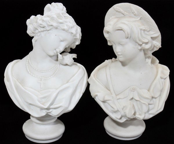 CONTINENTAL BISQUE BUSTS, 19TH C., TWO, H 8"