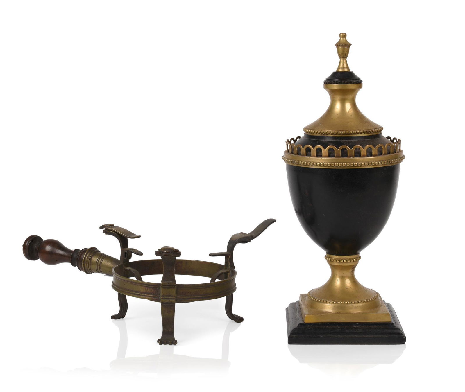 Continental Brass and Black Stone Urn.