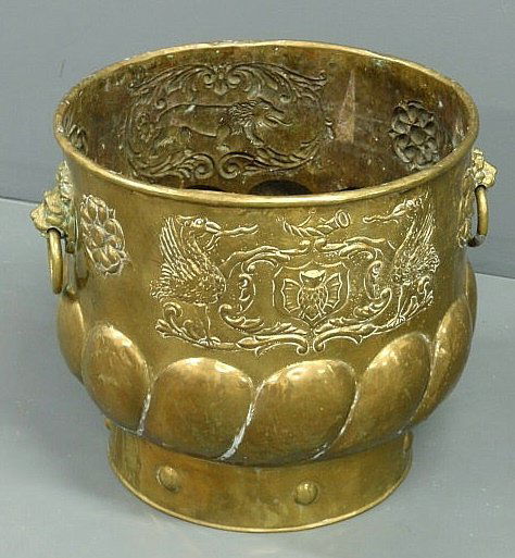 Continental brass container decorated with griffin