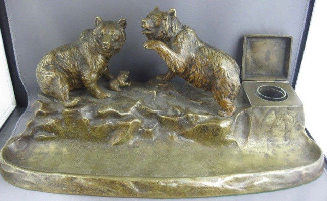 Continental Bronze Bear Form Inkwell