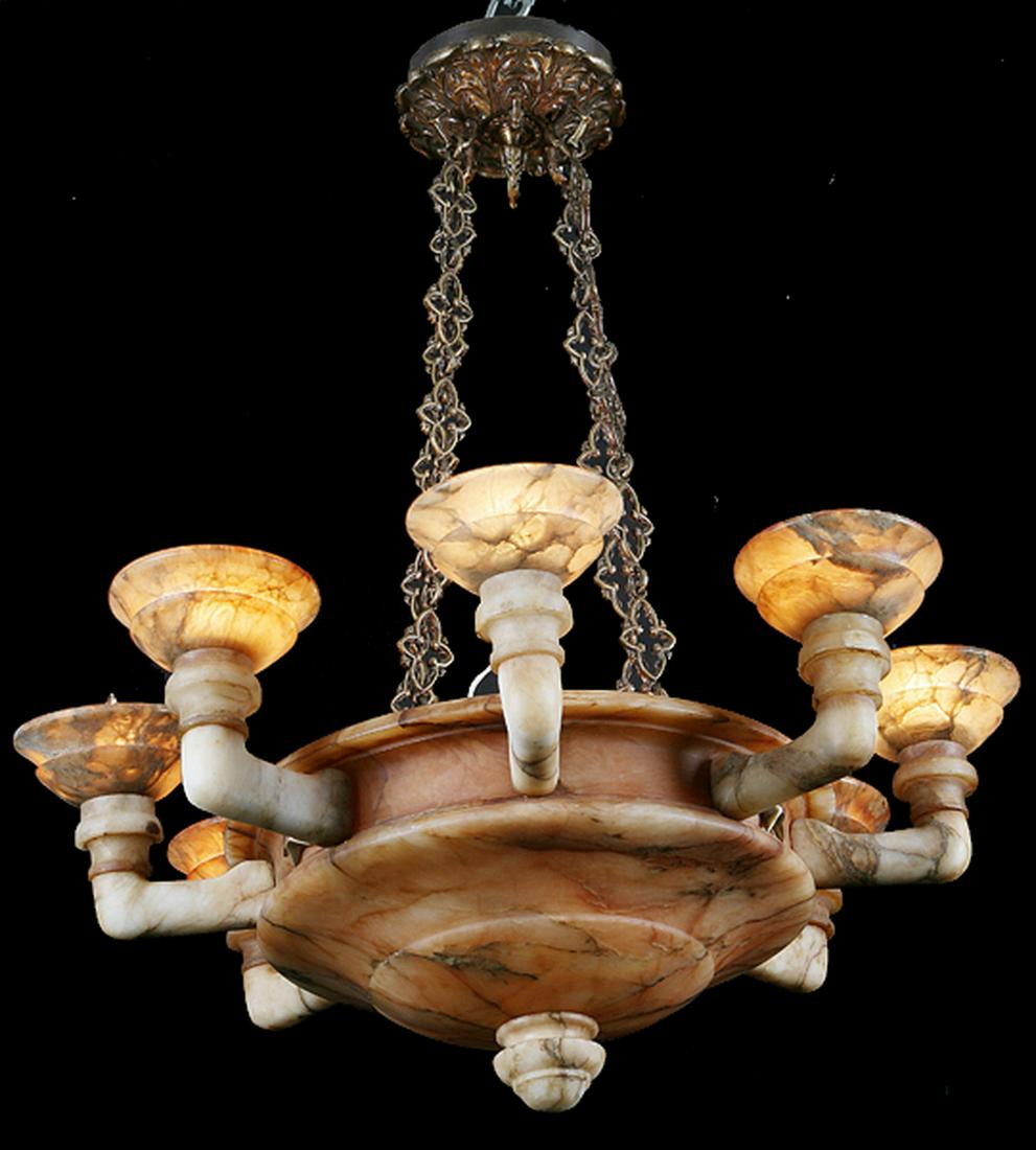 Continental carved alabaster chandelier