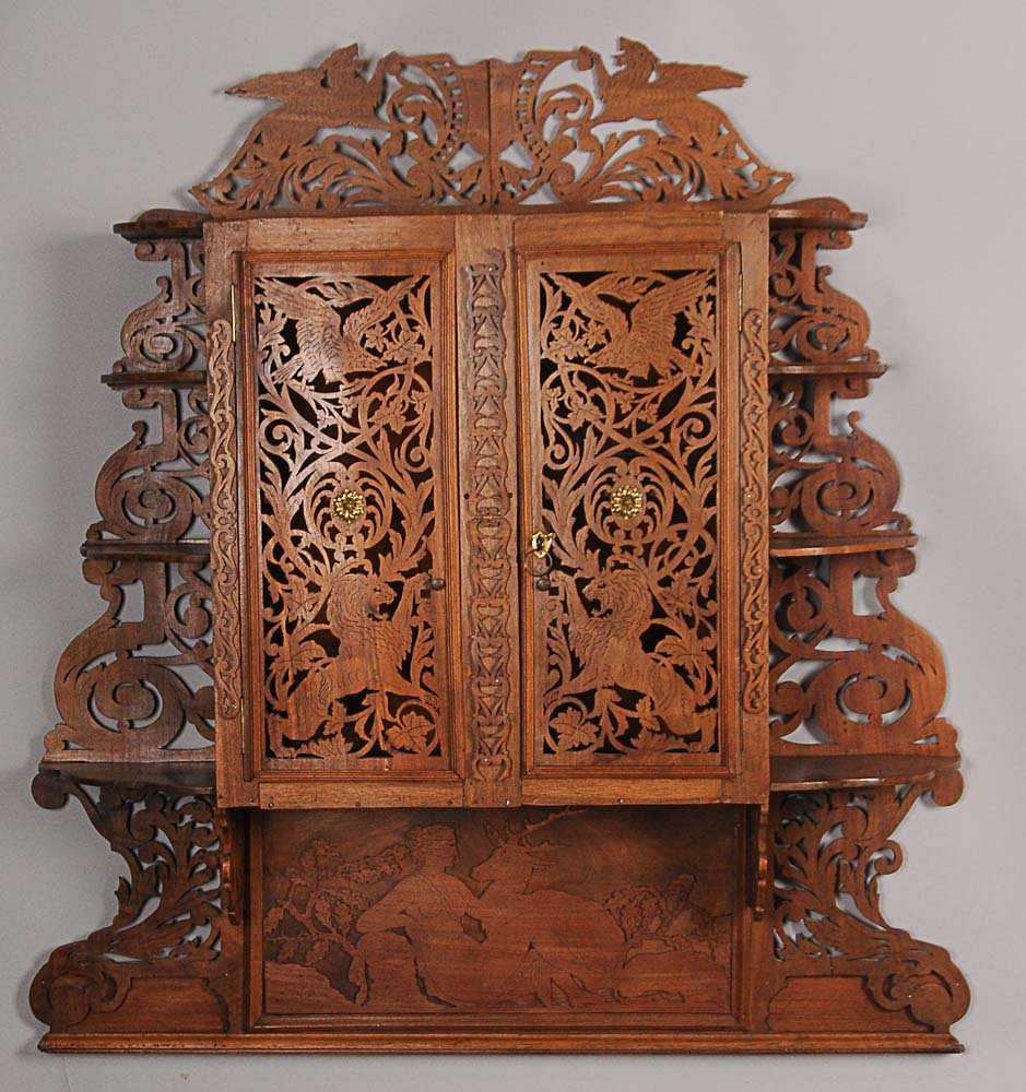 Continental Carved Walnut Wall Cabinet