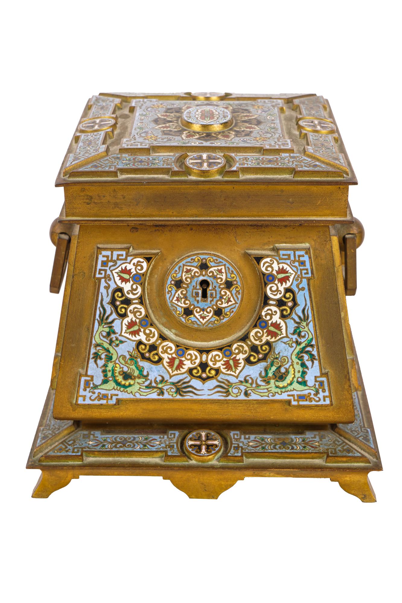 CONTINENTAL CHAMPLEVE & GILT BRONZE COFFERETTE