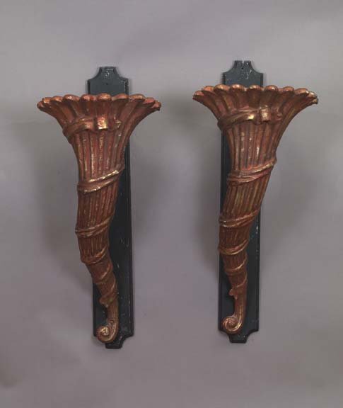 Continental Copper and Parcel-Gilt Cornucopiae