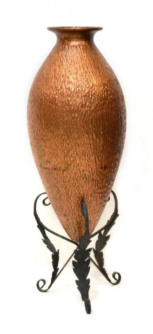 CONTINENTAL COPPER VASIFORM FLOWER POT ON STAND
