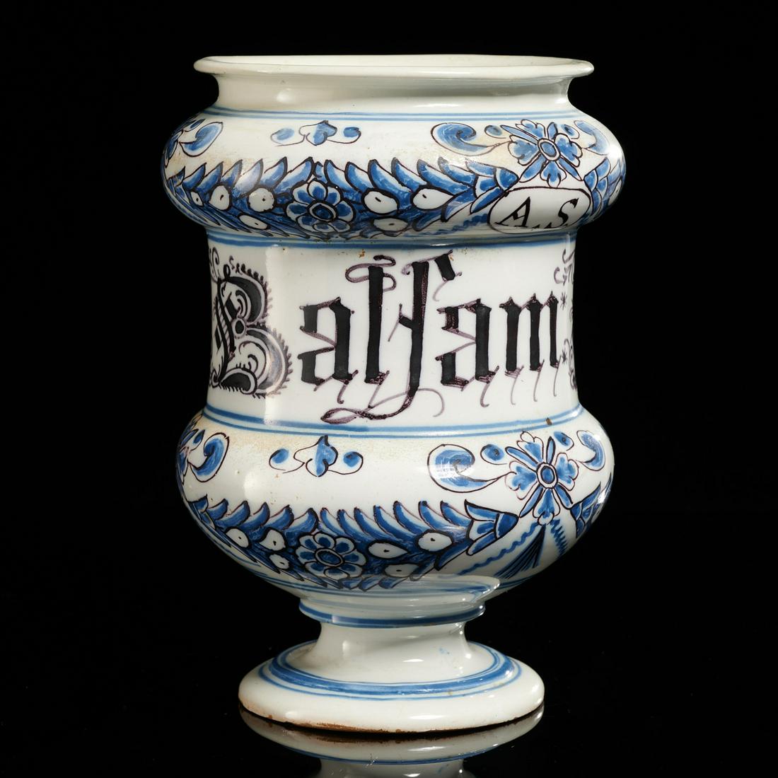 Continental faience footed drug jar