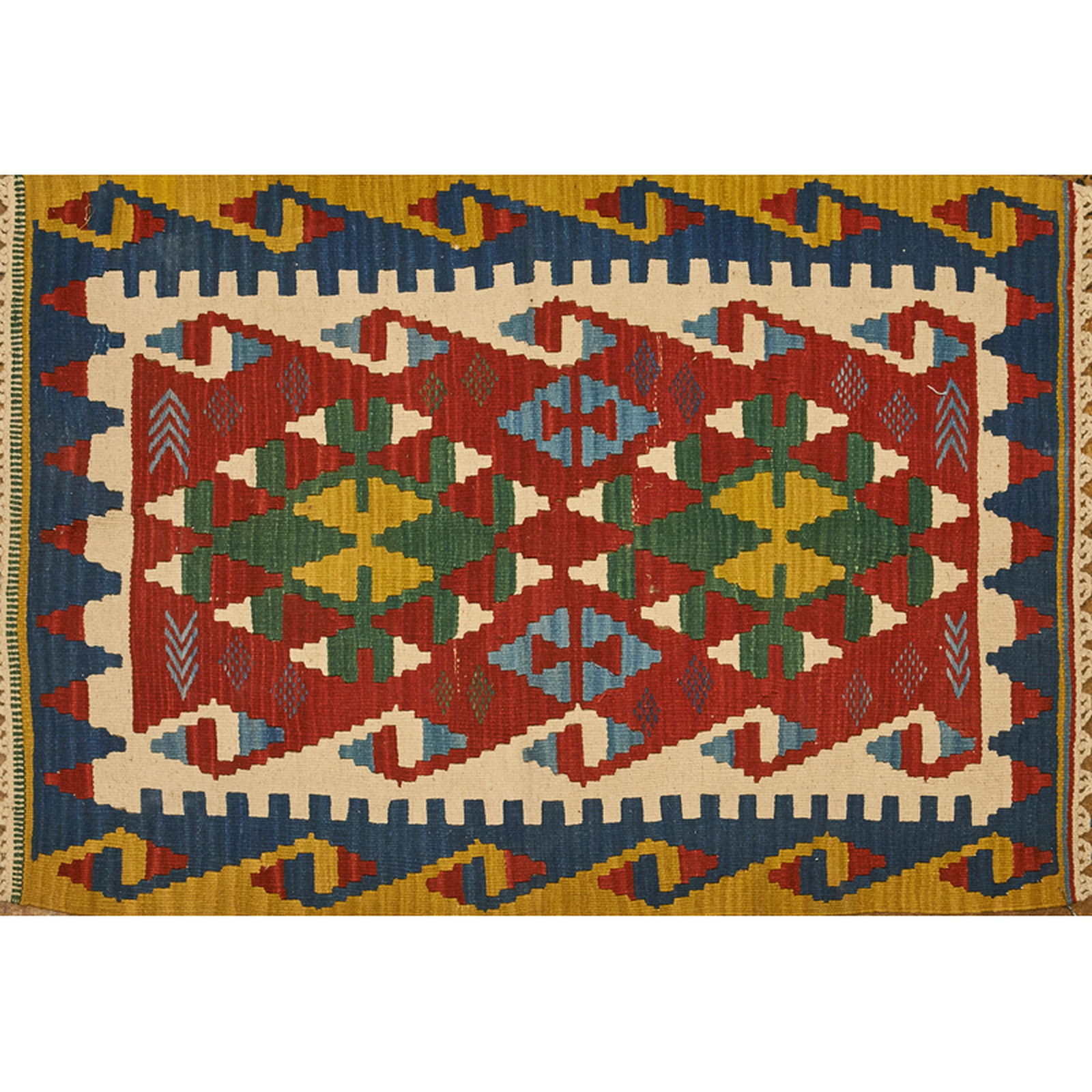 Vintage 1960s Handmade Multicolor Geometric Wool Kilim Rug 4'8" x 5'1"Mynt Auctions4.4(831)$1005 days Left